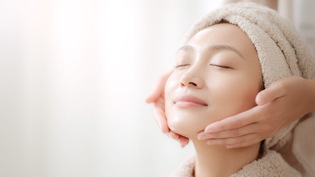 首やデコルテの産毛ケアや保湿をしておくと肌の印象がより整って見えます。